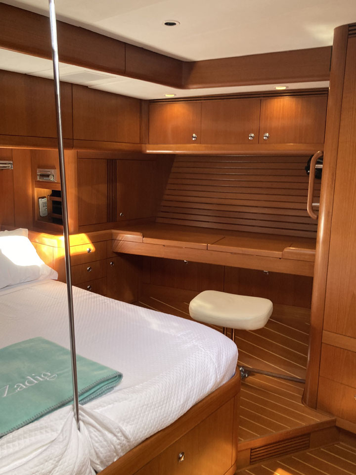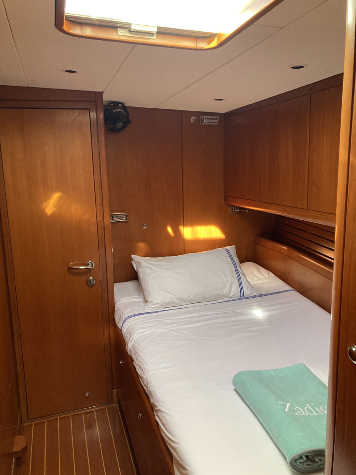 I purchased the yacht in Ireland in June 2022. I sailed her to the Mediterranean. Her homeport has been Punta Ala. Since purchase, I have spent considerable effort, time, and money to bring ZADIG to her current wonderful condition. She has important updates that will benefit a new owner long into the future. We have during 2023 and again in 2025 made substantial works, upgrades and renewals – including new engine, new gen set, complete new Victron 4 electrical system, new air conditioning, rig service, renewal of the hydraulic system, new upholstery, new batteries, new B&G, new tender, and much more.