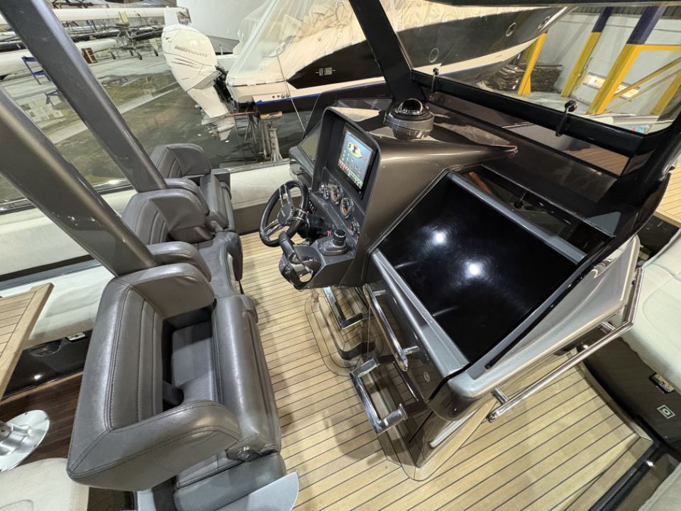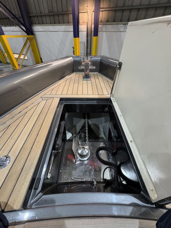 Performance is effortless and exhilarating with twin Mercury 350hp Verado engines, a joystick makes piloting simple with the Skyhook feature providing GPS-based anchoring. A bow thruster enables precise manoeuvring, allowing single-handed operation. Cruising speeds of 30 knots and top speeds of 45 knots deliver impressive, assured performance.