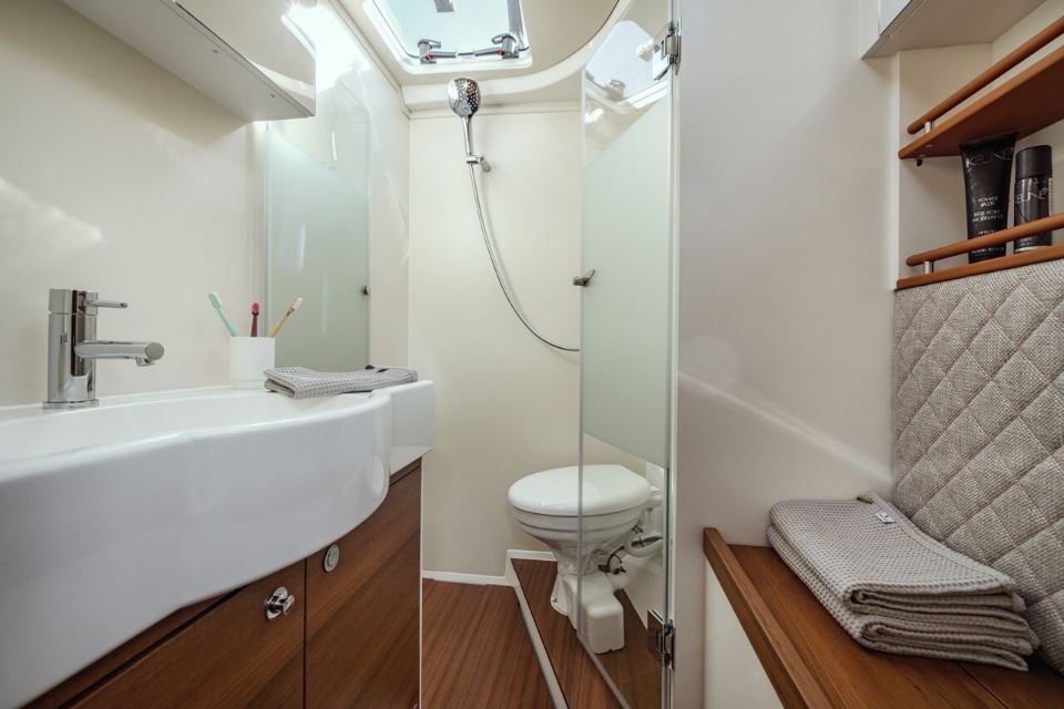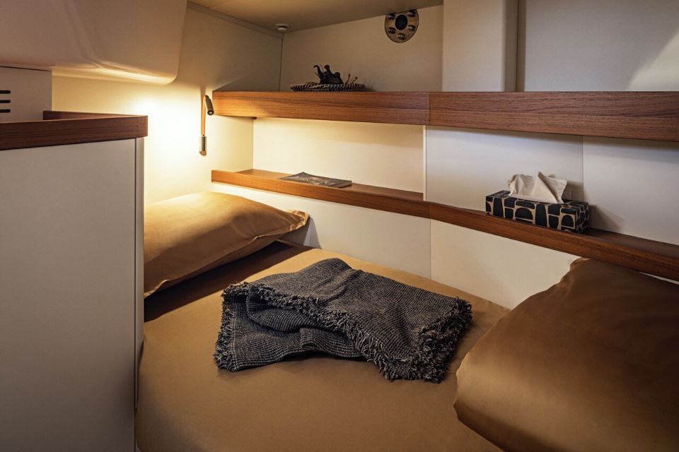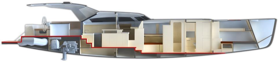 Designing the Pegasus 50 systems, maintenance and accessibility were in focus all the time as this gives additional value to the yacht. Not having aft cabins provided a unique opportunity to create a side-to-side technical room under the cockpit with engine and generator room in between. Portside water-related equipment and starboard side electrics and electronics. All equipment installed is visually and physically accessible for checks and replacements. The engine room, with access from technical rooms and from cockpit floor hatch, is double as usually insulated from the interior to reduce air born noise. All systems were carefully designed and re-thought in order to improve functionality but reduce the number of elements. Less is more: fewer parts, less potential mistakes, more freedom wherever you are. Beside systems designs, special attention was put to the selection of best materials existing on the market.
