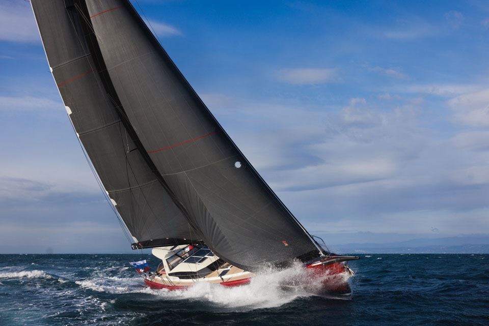 Main elements for sailing yachts speed are total displacement, stability and its engine – sails. As we did not want to compromise comfort, safety and simplicity, by increasing sail area or reducing diesel and water capacity or equipment necessary for freedom at sea, we had to optimize construction to reduce weight. Using the latest production technologies and carbon materials combined with refined engineering methods resulted in light but sound and safe yacht construction. To achieve this, we paired with winning ocean racing designers and engineers.
