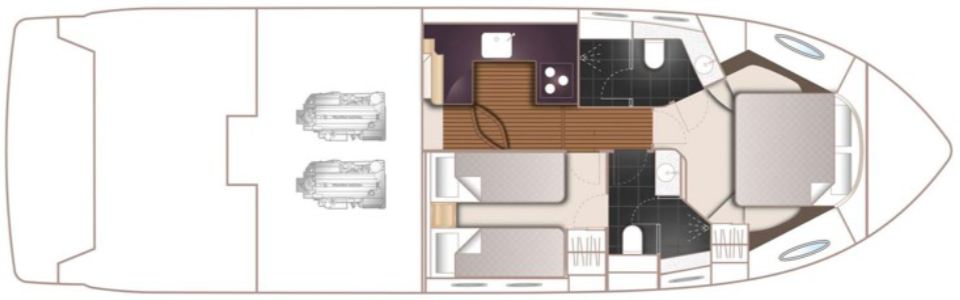 Princess Yachts have always been masters of the 40-45’ flybridge market, with the Princess 40 and sublime 42 laying down a heavy gauntlet for their younger sisters to pick up. Combining enough space for relaxed family cruising, their size and weight ensures that they are eminently manageable by a couple, with good storage volume, decent range and long flybridges to make the most of the weather. The 43 was launched late in 2013 with a much-improved flybridge and evolved interior styling and light (especially thanks to the new deeper-cut saloon windows), and instantly won its category in Motor Boat of the Year.