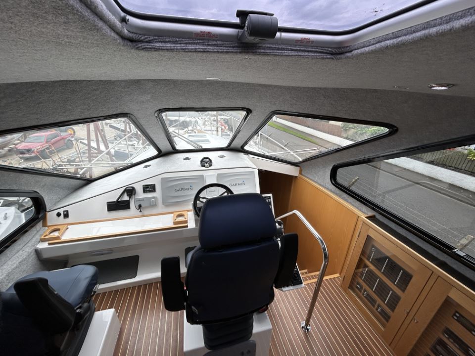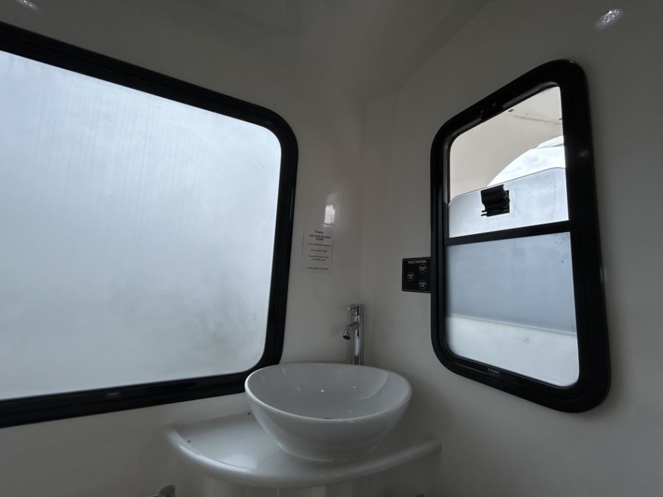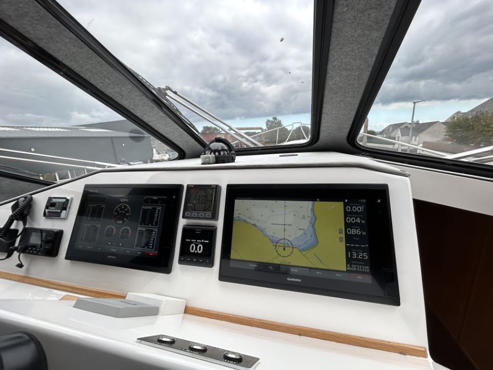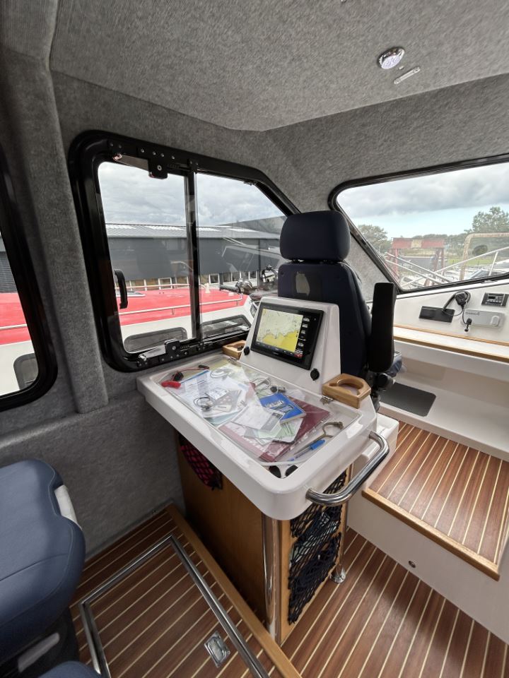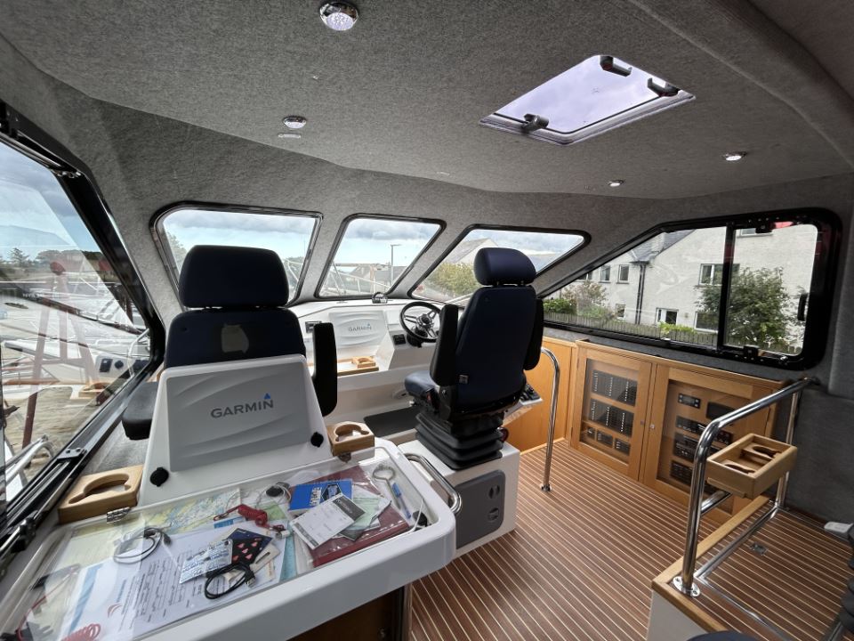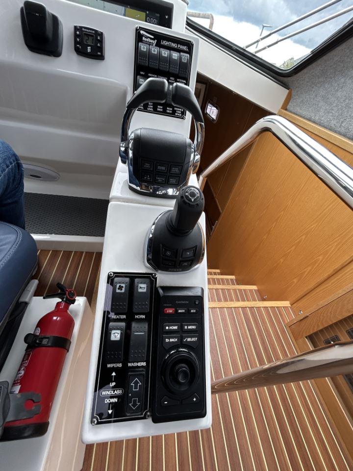 I strapped myself in and observed while our designated helmsman put the vessel through her paces, driving her at speed through the rough. He pushed her hard, but at no time did she deliver a single hard landing. I have to admit, though, to finding the peculiar combination of the conditions raging outside and the warm serenity of the Redbay’s cabin with its Fusion SiriusXM sound system playing quite a surreal experience! Certainly, the latter gave a strange sense of ‘homely normality’ and psychologically had the effect of dumbing down the harshness of the conditions on deck.