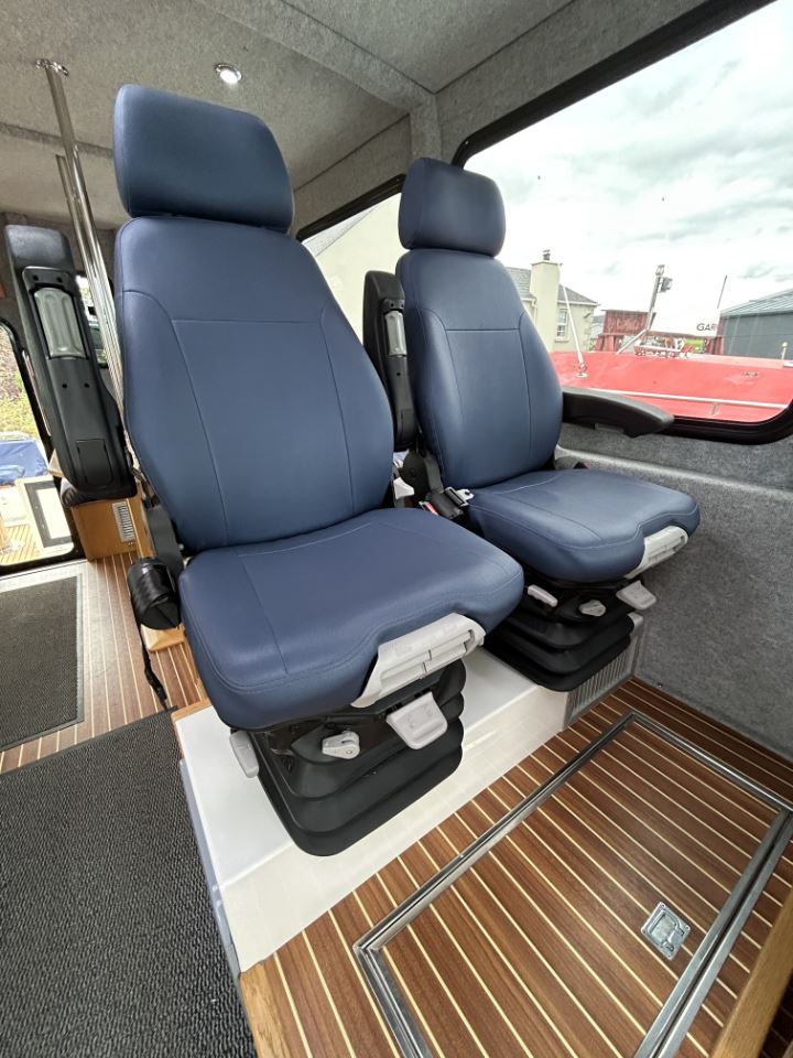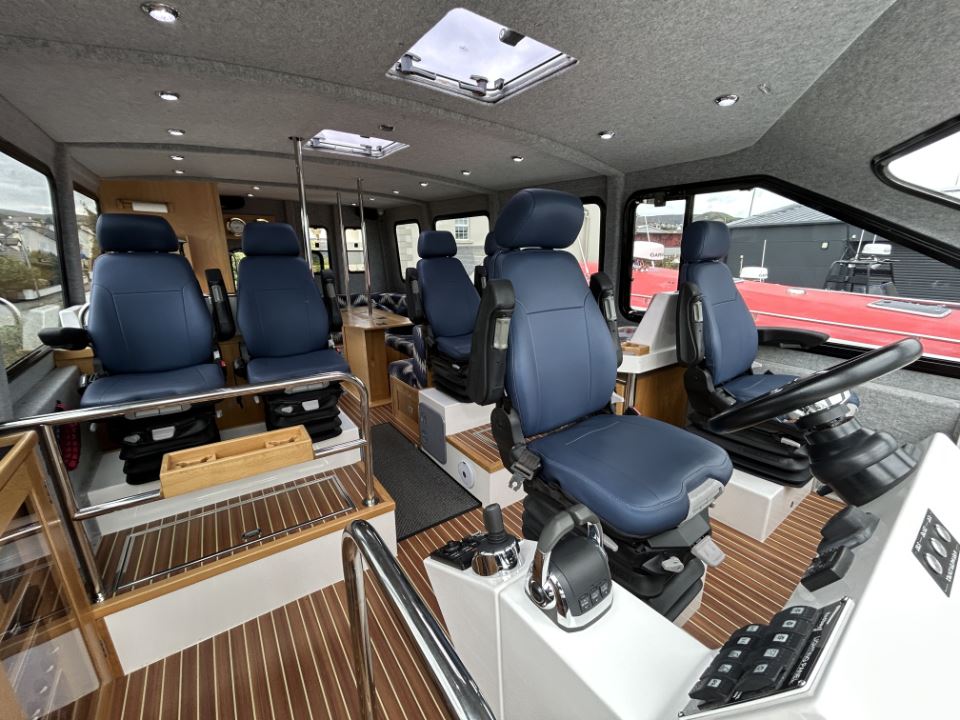 In 2018, following a major expansion of the Redbay building facilities in Cushendall, the order for LADY KATE came in (yet another repeat customer – who had previously bought and enjoyed a 1250). The same phenomenally capable hull form of the pilot boats was now a fully-fledged luxury offshore cruising RIB. From the resilience of her pneumatic Hypalon tubes, through the array of suspension seats, to her hand-crafted oak interior – this is one purposeful lady. Built expressly to run through whatever weather is found outside, LADY KATE is truly individual. The weight in build is commercial, the hull integrity is beyond reproach, and the systems integration is exceptional. She is in no way everyday – but that is what makes her what she is. She can happily operate in conditions that would keep any “normal” yacht safely snugged up in harbour, with a 5,000-litre tank capacity offering well over 1,000 NM in range. Now that is a true explorer.