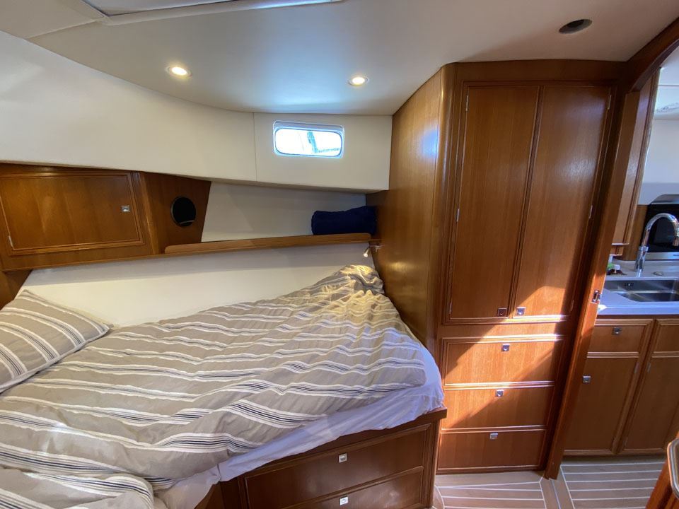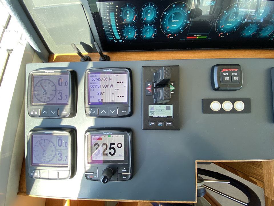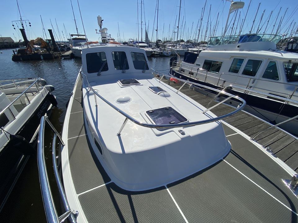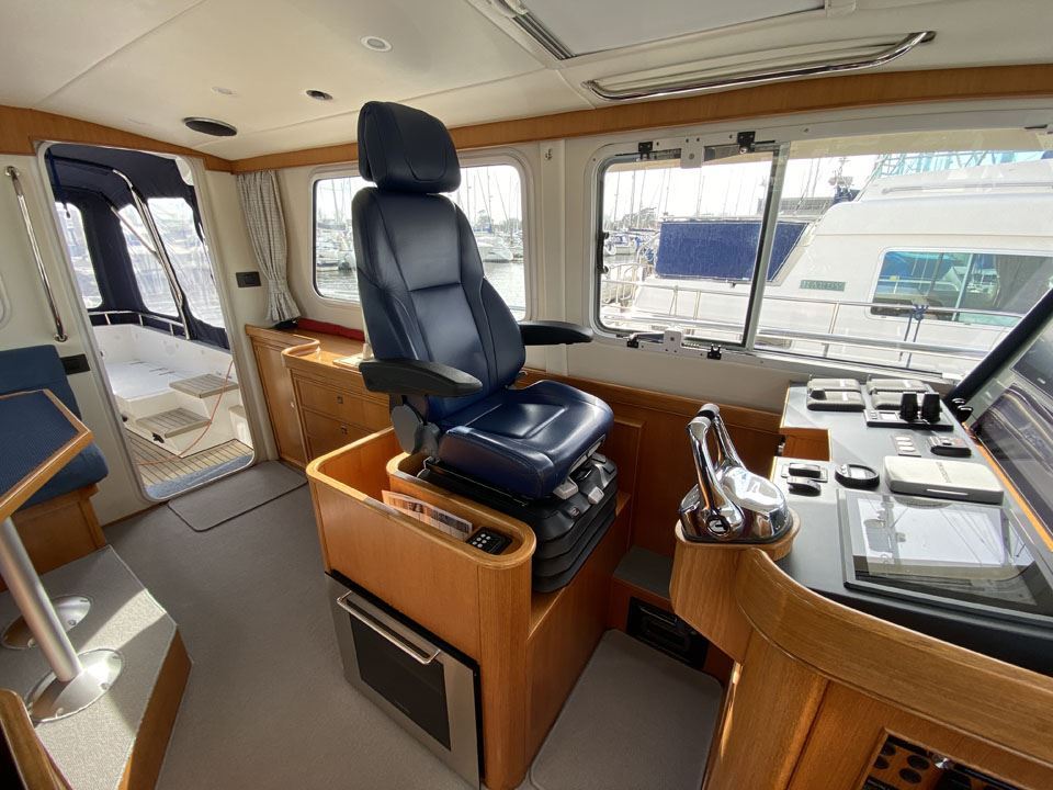 The previous owner of “Bounder” was an experienced yachtsman that commissioned her from new and was thoroughly involved in the build. Specification included significantly upgraded systems and specifically soundproofing. “Bounder” was his second Seaward, and he kept her in absolutely immaculate condition, maintained by a professional skipper. We were thoroughly smitten by her sea-kindly motion, comfort and build quality as we upgraded from planning-hulled motorboats. However busy diaries have kept us from making time to be afloat during our ownership and “Bounder” is now offered in pristine condition.