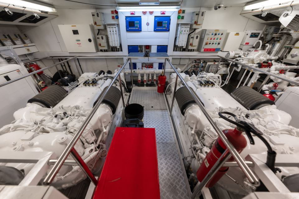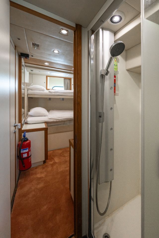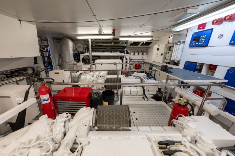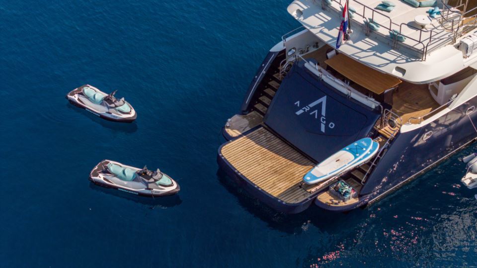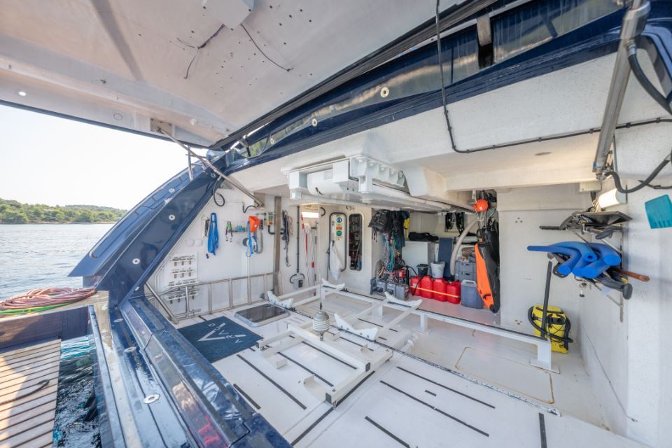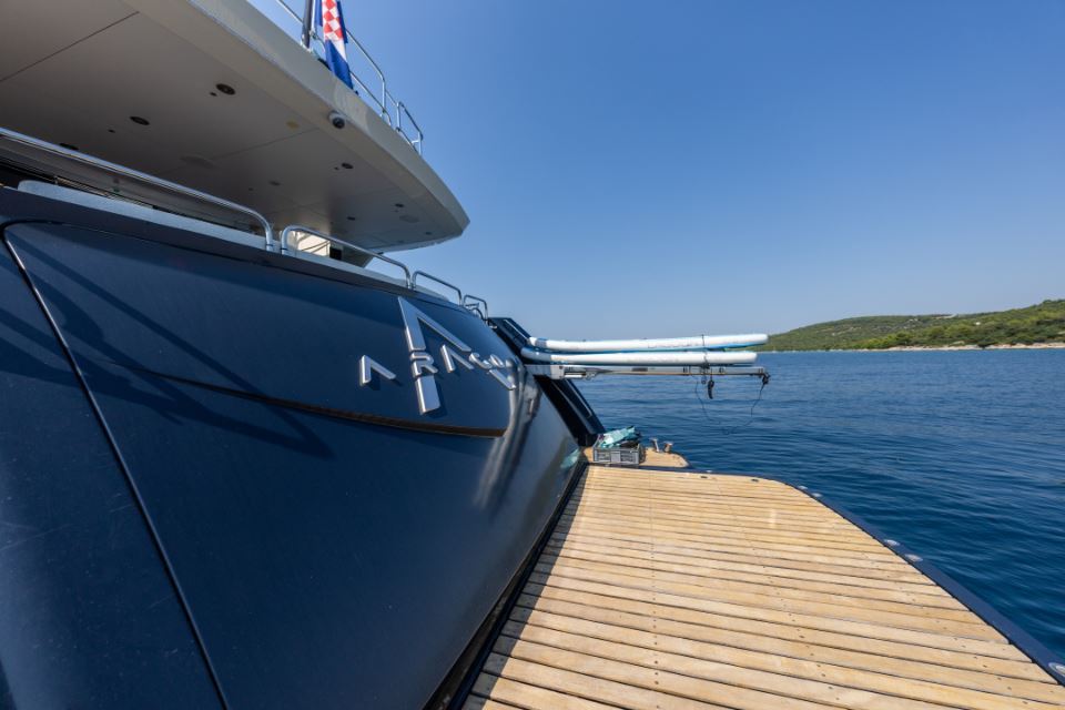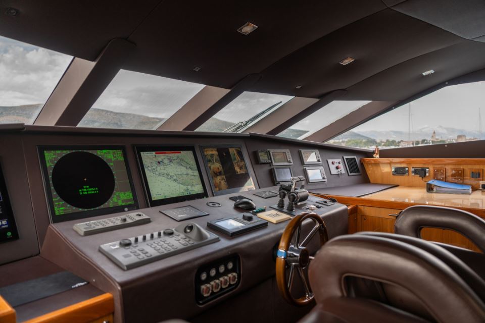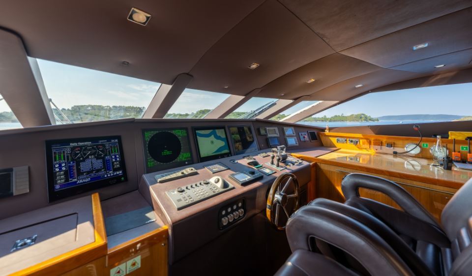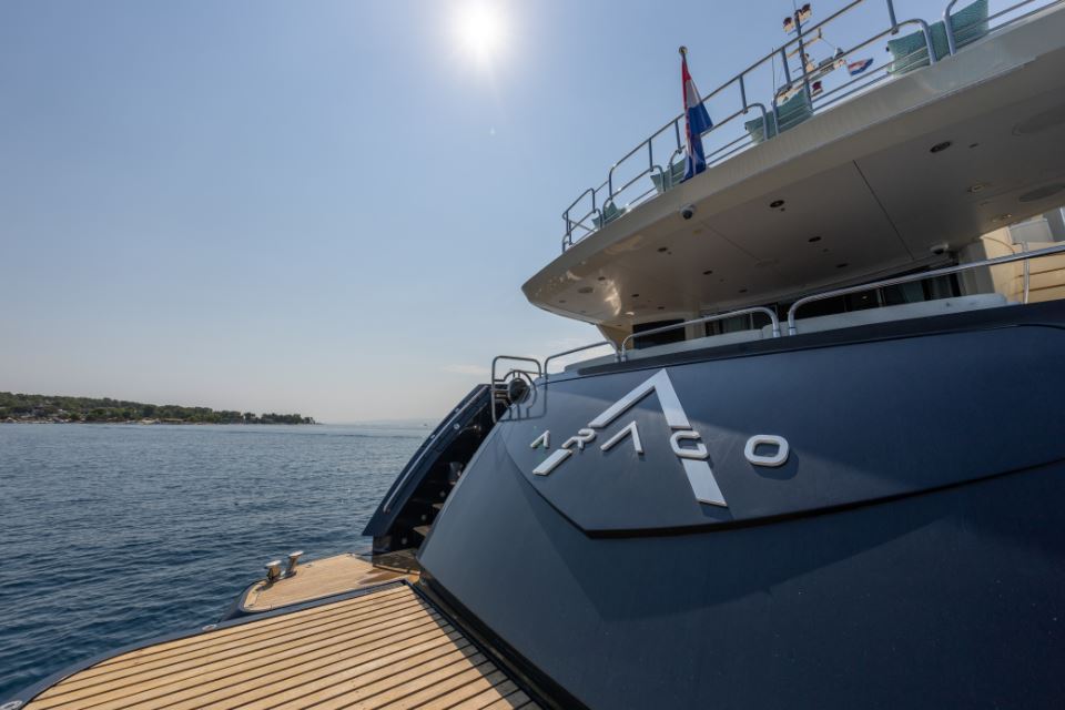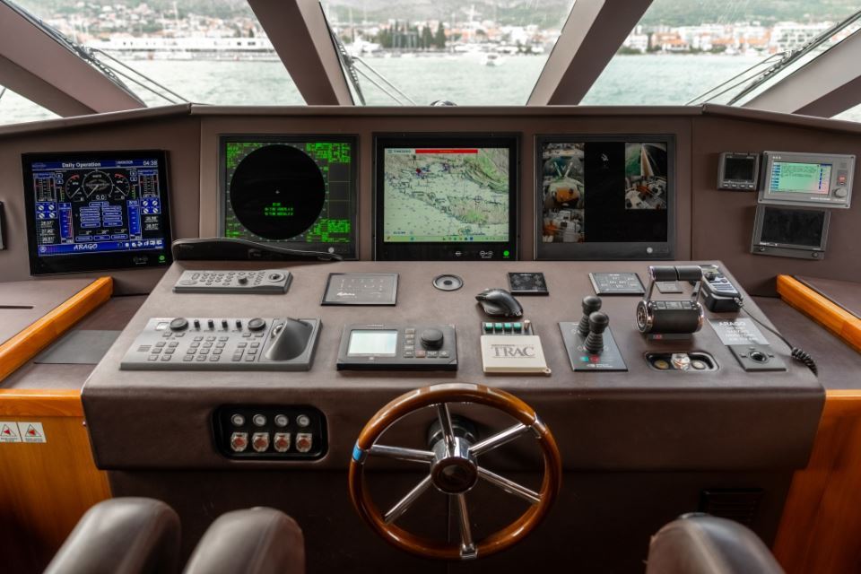 Professionally maintained to the highest standards by her dedicated crew of six, ARAGO was originally built to RINA classification and now operates under a Croatian International Voyage License, commercially certified to carry up to 17 persons. Technically, she is exceptionally well-equipped for international cruising, featuring zero-speed TRAC fin stabilisers for superior comfort at anchor, twin KOHLER 80kW generators, a new ANG 70kVA shore power converter, and the advanced Tijssen vessel management system, providing seamless onboard monitoring and control.