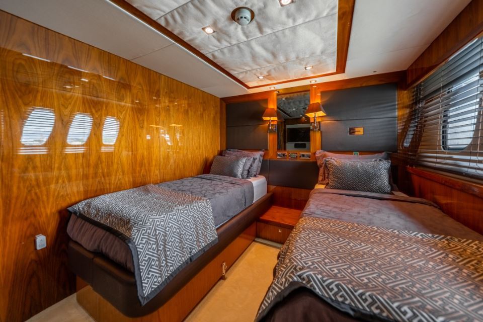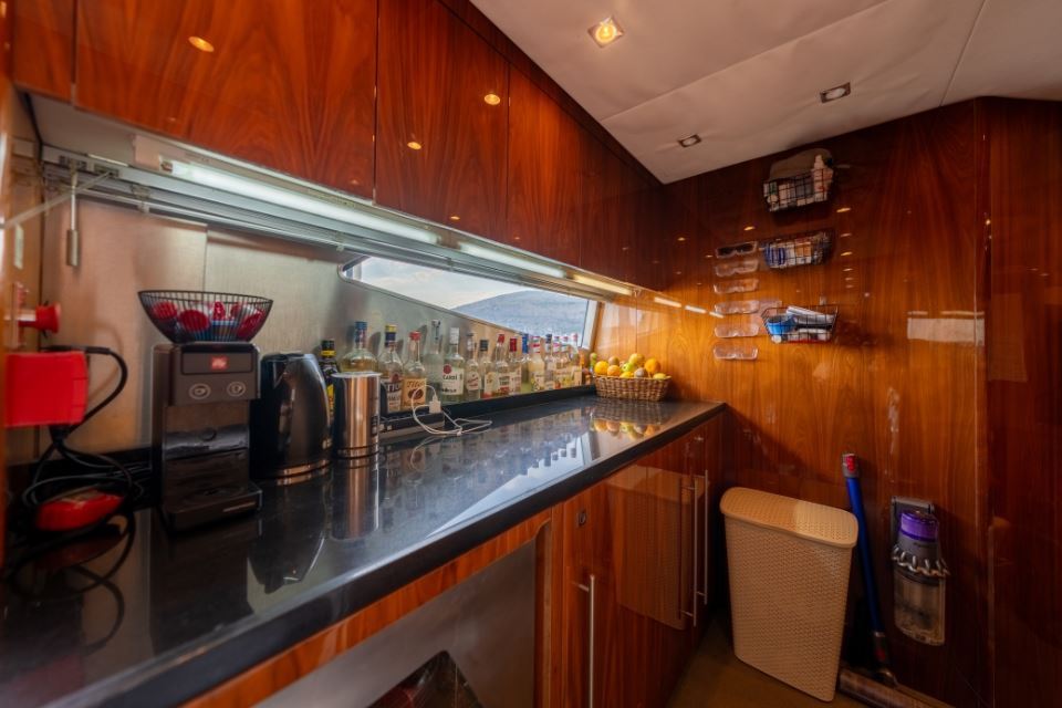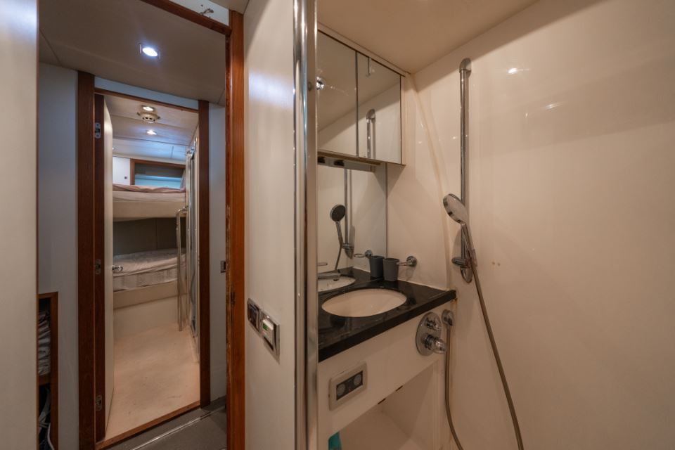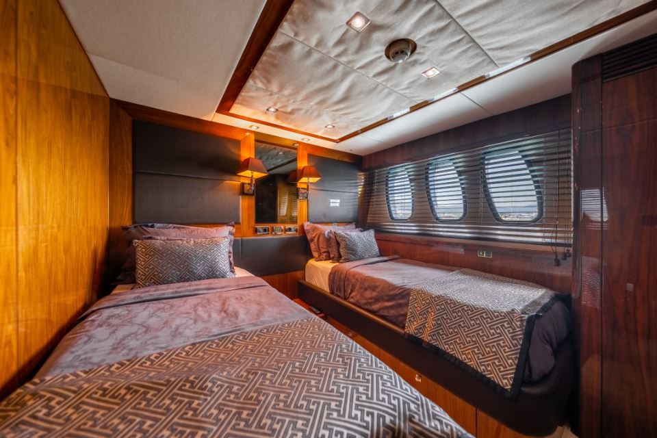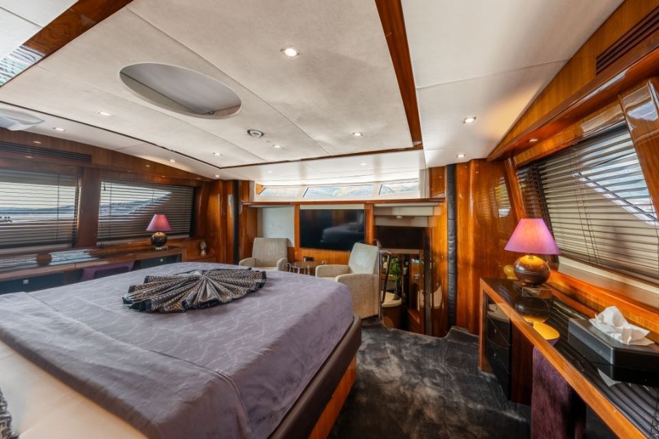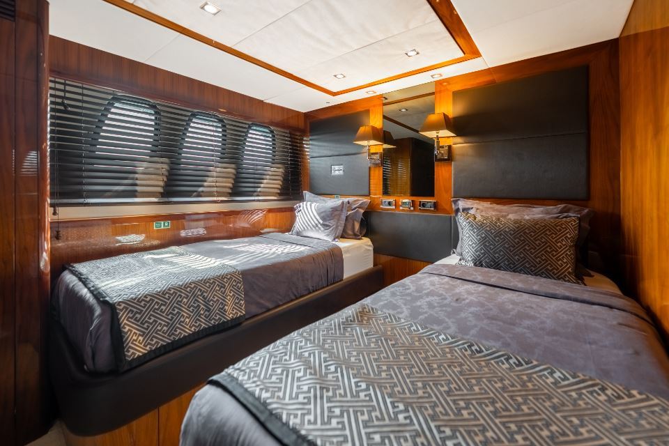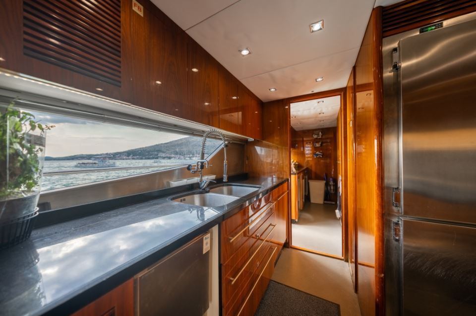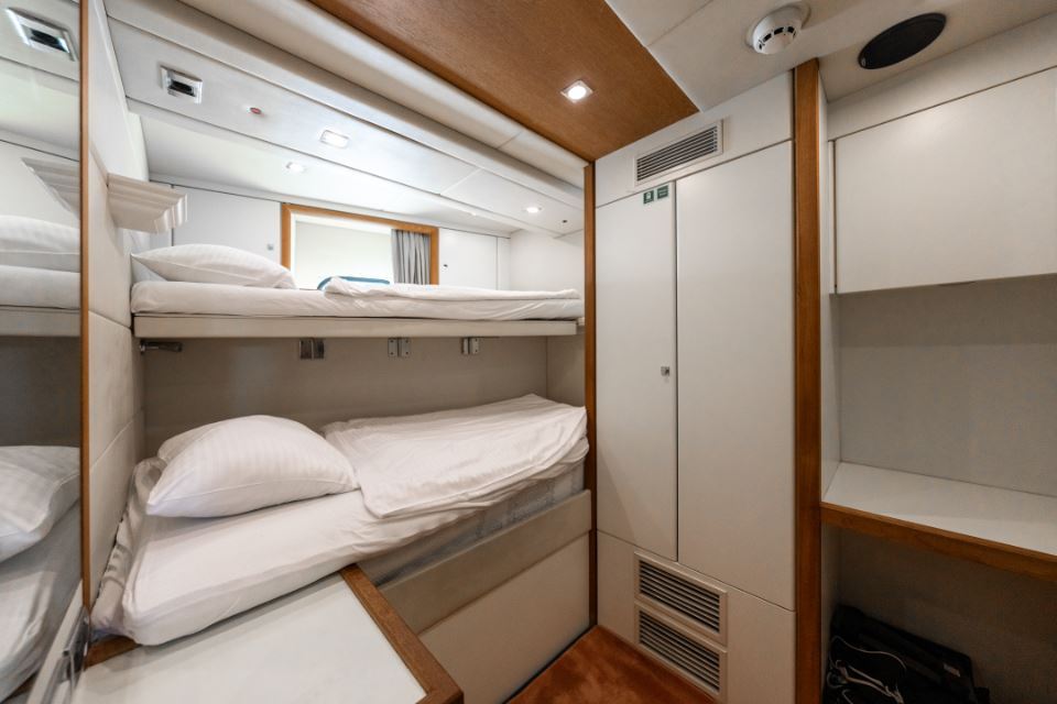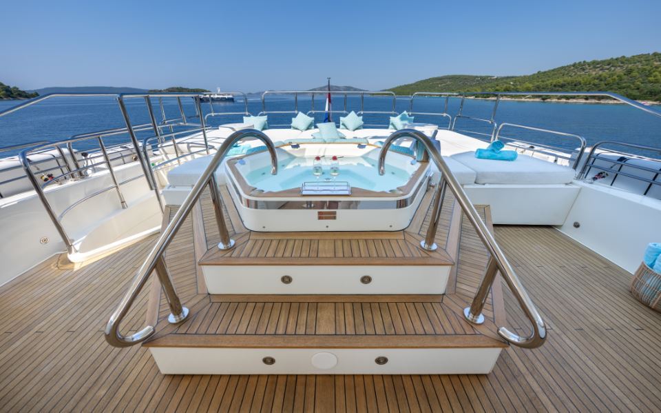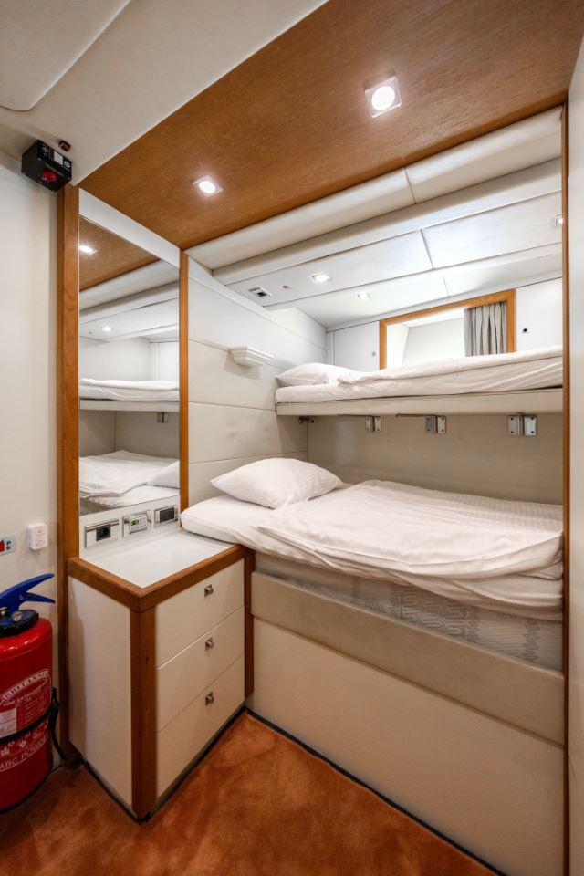Professionally maintained to the highest standards by her dedicated crew of six, ARAGO was originally built to RINA classification and now operates under a Croatian International Voyage License, commercially certified to carry up to 17 persons. Technically, she is exceptionally well-equipped for international cruising, featuring zero-speed TRAC fin stabilisers for superior comfort at anchor, twin KOHLER 80kW generators, a new ANG 70kVA shore power converter, and the advanced Tijssen vessel management system, providing seamless onboard monitoring and control.