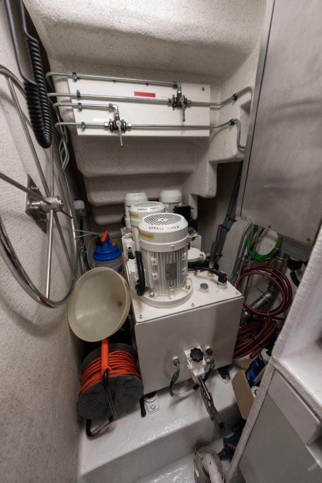 Her garage is home to two new SEADOO GTX Pro Jet Skis, launched effortlessly via a dedicated Demac crane, along with two SEABOB F5 S units, paddleboards, and an extensive array of water toys. Completing the waterside experience, the hydraulic high/low swim platform forms the heart of the beach club for effortless access.