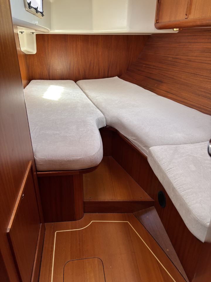 Both we and our predecessors have mostly sailed her double-handed – in their case, into their late seventies. During our ownership we have carried out some significant major upgrades including decks, electronics and upholstery