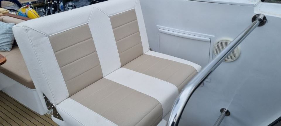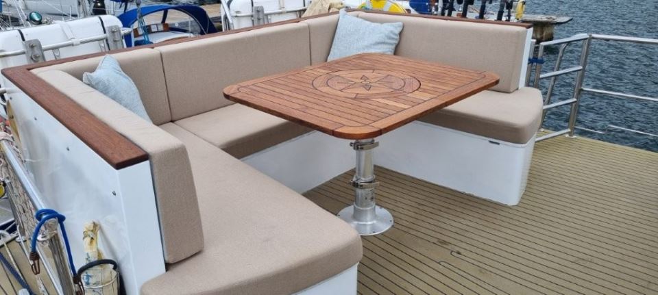 All of these contribute to a superb combination for unrivalled, comfortable cruising. One of my favourite features is the small seat to port of the helm, where the back hinges down to create a table – ideal for drinks and snacks under way, but also invaluable for keeping a pilot book open when entering an unfamiliar port. As you would expect, this is served by a blue/white reading lamp, perfect for night passages or for use by those seated in the saloon behind. Safety has always been high on my agenda, so she is very well fitted out in this regard – with much learned from her previous coding.