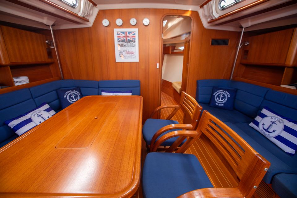 I am the second owner of MAXIAN, having purchased her from her first owner in 2019. Since then, we have enjoyed light family cruising in the UK and the Mediterranean.